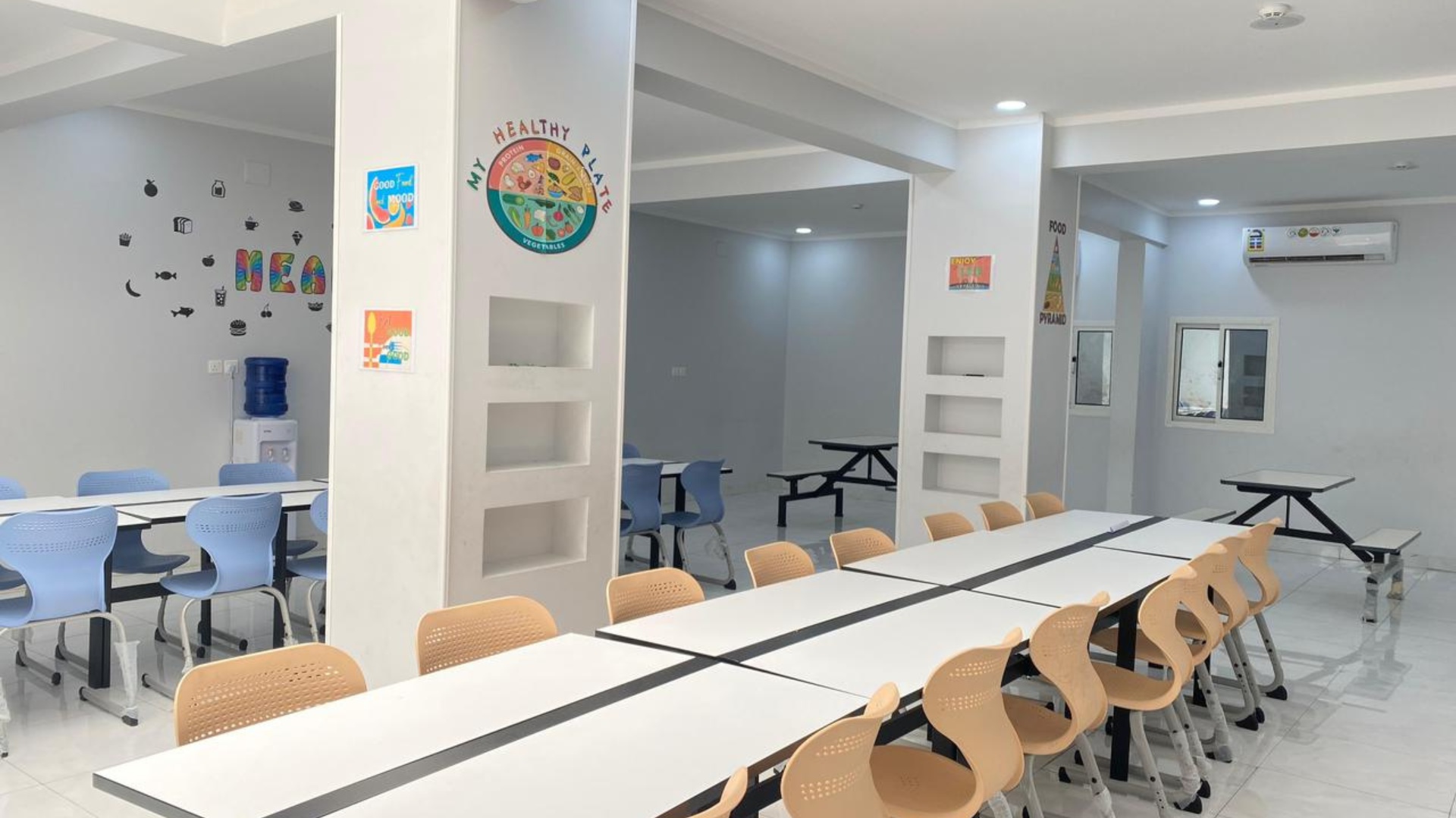 في مدرسة خطوة أولى العالمية، نسعى جاهدين لخلق بيئة دافئة ومرحبة لطلابنا للاستمتاع بوجباتهم. تم تصميم مقصفنا لتوفير مناطق جلوس وفيرة حيث يمكن للطلاب الاسترخاء والترويح عن أنفسهم والتواصل مع أقرانهم. نحن نعطي الأولوية للنظافة لضمان إعداد جميع الأطعمة وتقديمها وفقًا لمعايير الصحة والسلامة الصارمة. يتميز أفراد فريق العمل لدينا بالود ومرحبين دائمًا لمساعدة الطلاب في تجربة تناول طعام إيجابي